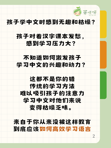 课程中的‘芽呀呀框架’帮助孩子只学最有用的中文,