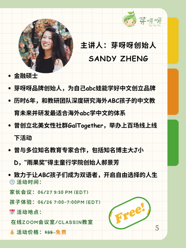 孩子体验:06/26 7:00-7:00pm (EDT)